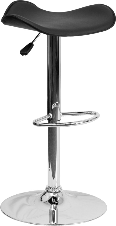 - This sleek dual purpose stool easily adjusts from counter to bar height. The backless design is casual and contemporary which allow it to seamlessly accent any area in the home. The easy to clean vinyl upholstery is perfect when being used on a regular basis. The height adjustable swivel seat adjusts from counter to bar height with the handle located below the seat. The chrome footrest supports your feet while also providing a contemporary chic design. To help protect your floors, the base features an embedded plastic ring.
