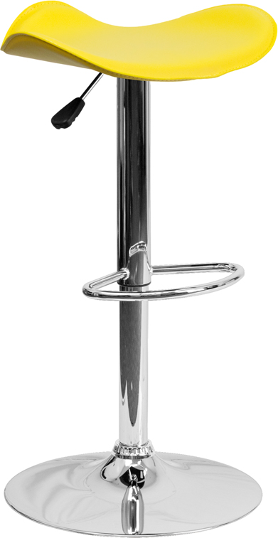 - This sleek dual purpose stool easily adjusts from counter to bar height. The backless design is casual and contemporary which allow it to seamlessly accent any area in the home. The easy to clean vinyl upholstery is perfect when being used on a regular basis. The height adjustable swivel seat adjusts from counter to bar height with the handle located below the seat. The chrome footrest supports your feet while also providing a contemporary chic design. To help protect your floors, the base features an embedded plastic ring.