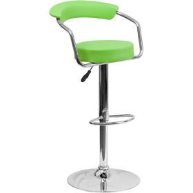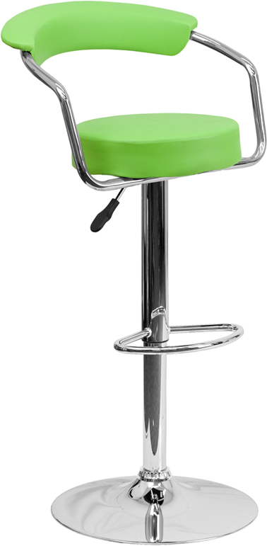 - This dual purpose stool easily adjusts from counter to bar height. This open back retro style stool with arms will look great around the bar or kitchen. The easy to clean vinyl upholstery is an added bonus when stool is used regularly. The height adjustable swivel seat adjusts from counter to bar height with the handle located below the seat. The chrome footrest supports your feet while also providing a contemporary chic design. To help protect your floors, the base features an embedded plastic ring.