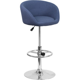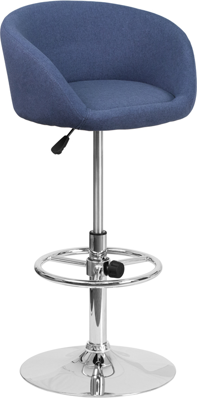 - This modern barstool is upholstered in an appealing fabric upholstery and adjusts from counter to bar height. The height adjustable swivel seat adjusts from counter to bar height with the handle located below the seat. The chrome footrest supports your feet while also providing a contemporary chic design. To help protect your floors, the base features an embedded plastic ring.