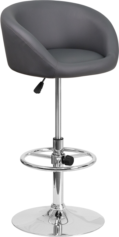 - This modern barstool is upholstered in a durable vinyl upholstery and adjusts from counter to bar height. The height adjustable swivel seat adjusts from counter to bar height with the handle located below the seat. The chrome footrest supports your feet while also providing a contemporary chic design. To help protect your floors, the base features an embedded plastic ring.