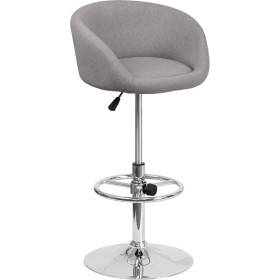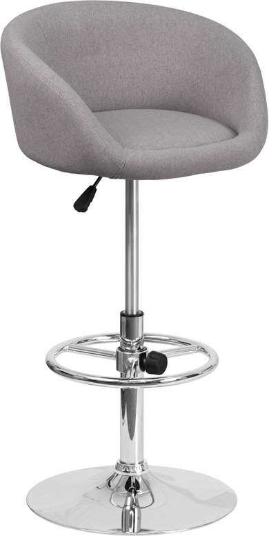- This modern barstool is upholstered in an appealing fabric upholstery and adjusts from counter to bar height. The height adjustable swivel seat adjusts from counter to bar height with the handle located below the seat. The chrome footrest supports your feet while also providing a contemporary chic design. To help protect your floors, the base features an embedded plastic ring.