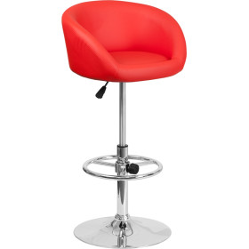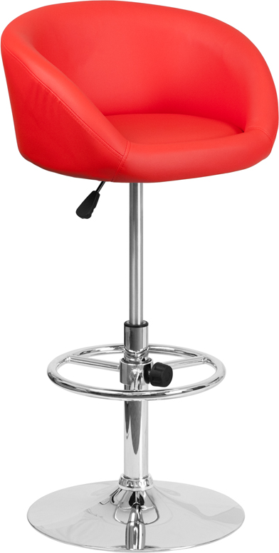 - This modern barstool is upholstered in a durable vinyl upholstery and adjusts from counter to bar height. The height adjustable swivel seat adjusts from counter to bar height with the handle located below the seat. The chrome footrest supports your feet while also providing a contemporary chic design. To help protect your floors, the base features an embedded plastic ring.