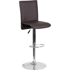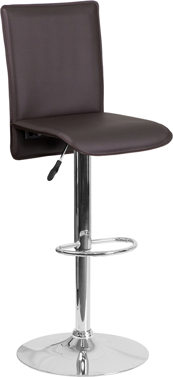 - This sleek dual purpose stool easily adjusts from counter to bar height. This stylish stool provides added comfort with the waterfall front seat, which is designed to remove pressure from the lower legs and improves circulation. The easy to clean vinyl upholstery is an added bonus when stool is used regularly. The height adjustable swivel seat adjusts from counter to bar height with the handle located below the seat. The chrome footrest supports your feet while also providing a contemporary chic design. To help protect your floors, the base features an embedded plastic ring.