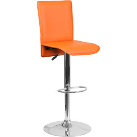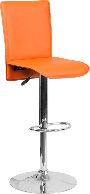 - This sleek dual purpose stool easily adjusts from counter to bar height. This stylish stool provides added comfort with the waterfall front seat, which is designed to remove pressure from the lower legs and improves circulation. The easy to clean vinyl upholstery is an added bonus when stool is used regularly. The height adjustable swivel seat adjusts from counter to bar height with the handle located below the seat. The chrome footrest supports your feet while also providing a contemporary chic design. To help protect your floors, the base features an embedded plastic ring.
