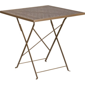 - Brighten up your patio space with this beautiful patio table. The rain flower printed top is very appealing. This table will enhance your bistro, cafe, restaurant, hotel or home patio space. With the convenience of a folding table you can use it as a temporary placement or fold away for storage or cleaning the space. Quickly unfold the table by pulling the center brace. The table was designed for all-weather use making it a great option for indoor and outdoor settings. For longevity, care should be taken to protect from long periods of wet weather.