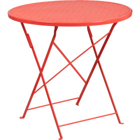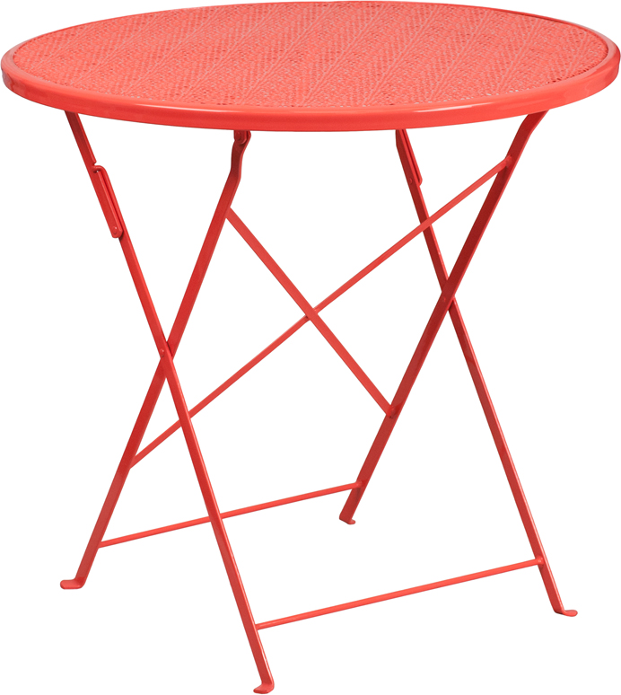 - Brighten up your patio space with this beautiful patio table. The rain flower printed top is very appealing. This table will enhance your bistro, cafe, restaurant, hotel or home patio space. With the convenience of a folding table you can use it as a temporary placement or fold away for storage or cleaning the space. Quickly unfold the table by pulling the center brace. The table was designed for all-weather use making it a great option for indoor and outdoor settings. For longevity, care should be taken to protect from long periods of wet weather.
