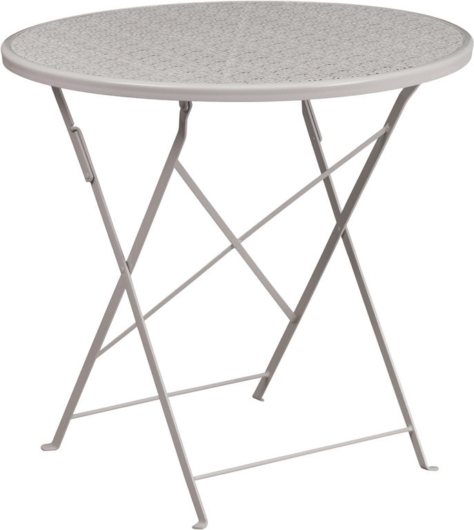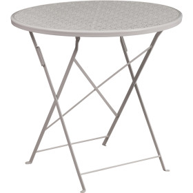 - Brighten up your patio space with this beautiful patio table. The rain flower printed top is very appealing. This table will enhance your bistro, cafe, restaurant, hotel or home patio space. With the convenience of a folding table you can use it as a temporary placement or fold away for storage or cleaning the space. Quickly unfold the table by pulling the center brace. The table was designed for all-weather use making it a great option for indoor and outdoor settings. For longevity, care should be taken to protect from long periods of wet weather.