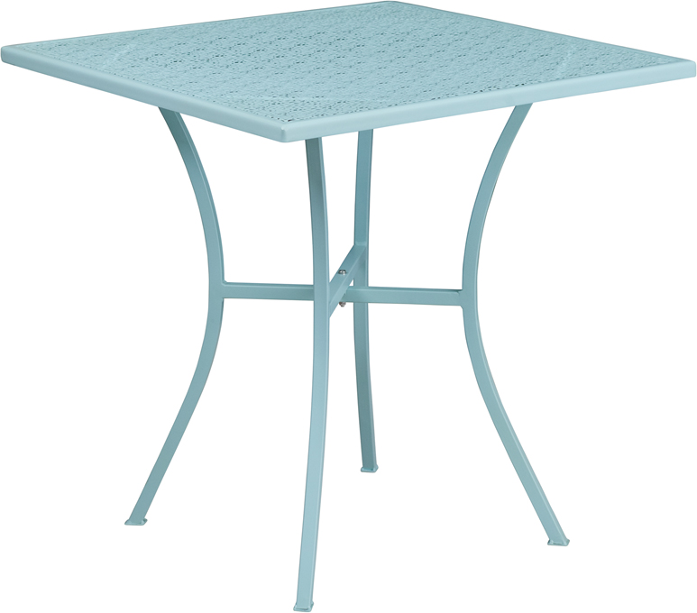- Brighten up your patio space with this beautiful patio table. The rain flower printed top is very appealing. This table will enhance your bistro, cafe, restaurant, hotel or home patio space. The table was designed for all-weather use making it a great option for indoor and outdoor settings. For longevity, care should be taken to protect from long periods of wet weather.