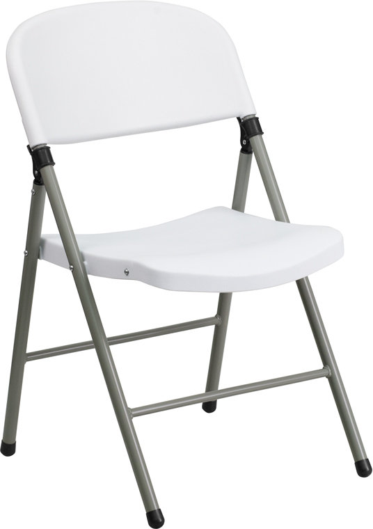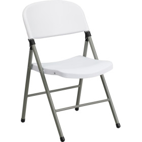 - Plastic folding chairs are the choice of many event planners for their lightweight design, ease of cleaning, and versatility among events. This heavy duty folding chair will be perfect for outdoor events or for additional seating in the home. The textured seat ensures safe and comfortable seating. After an event you can stack them on top of each other or in a row.
