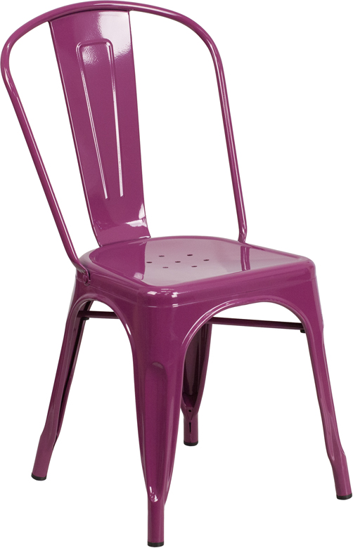 - Completely transform your living or restaurant space with this vintage style chair. Adding colorful chairs can rev up any setting. The versatility of this chair easily conforms in different environments. Chairs are lightweight and easily stack for storing. A cross brace underneath the seat adds extra stability and features protective caps that prevent the finish from scratching when stacked. The frame is designed for all-weather use making it a great option for indoor and outdoor settings. For longevity, care should be taken to protect from long periods of wet weather. The legs have protective floor glides that prevent damage to flooring.
