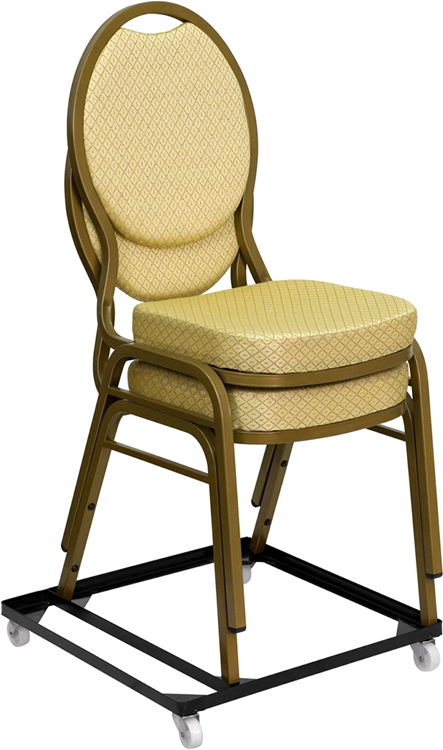 - Make moving your stack chairs faster and more efficient by being able to transport several chairs at once. This heavy duty dolly is very durable and designed especially for commercial use. The chair dolly will enable you to quickly create a banquet room seating arrangement or a business lecture in much less time with much less work. If you are looking forward to achieving increased productivity when it comes to setting up your next event, you need a stack chair dolly.