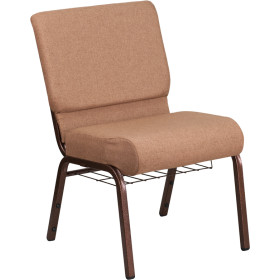 This beautiful church chair will keep your guests comfortable whether you're hosting an all-day seminar, serving a 10 course meal or delivering your most inspirational sermon. This chair offers an advantage over pew seating with the flexibility of creating different seating configurations.The chair's cushioned back and 4 inch thick seat are generously padded with CA117 fire retardant foam and covered in durable fabric upholstery. The spacious, 21 inch wide seat has a waterfall edge that reduces pressure on your attendees' legs. A convenient book pouch on the back of the chair keeps seminar materials, bibles or hymn books readily available and a book rack under the seat gives everyone a place to store their personal belongings. Built-in ganging brackets connect your chairs and maintain nice, straight rows. Its sturdy 16 gauge steel, copper vein frame, with gracefully angled legs, has been tested to hold up to 800 pounds and plastic rocker glides protect your floor by sliding smoothly when you need to move the chair.The Hercules Church Chair is an excellent option for hotel lobbies, banquet halls, conference facilities and worship centers.