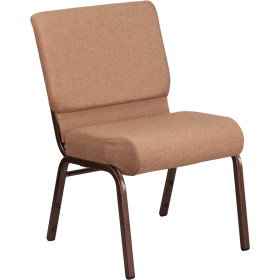 This beautiful church chair will keep your guests comfortable whether you're hosting an all-day seminar, serving a 10 course meal or delivering your most inspirational sermon. This chair offers an advantage over pew seating with the flexibility of creating different seating configurations.The chair's cushioned back and 4 inch thick seat are generously padded with CA117 fire retardant foam and covered in durable fabric upholstery. The spacious, 21 inch wide seat has a waterfall edge that reduces pressure on your attendees' legs. A convenient book pouch on the back of the chair keeps seminar materials, bibles or hymn books readily available. Built-in ganging brackets connect your chairs and maintain nice, straight rows. Its sturdy 16 gauge steel, copper vein frame, with gracefully angled legs, has been tested to hold up to 800 pounds and plastic rocker glides protect your floor by sliding smoothly when you need to move the chair.The Hercules Church Chair is an excellent option for hotel lobbies, banquet halls, conference facilities and worship centers.