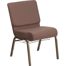 - This beautiful church chair will keep your guests comfortable whether you're hosting an all-day seminar, serving a 10 course meal or delivering your most inspirational sermon. This chair offers an advantage over pew seating with the flexibility of creating different seating configurations.The chair's cushioned back and 4 inch thick seat are generously padded with CA117 fire retardant foam and covered in durable fabric upholstery. The spacious, 21 inch wide seat has a waterfall edge that reduces pressure on your attendees' legs. A convenient book pouch on the back of the chair keeps seminar materials, bibles or hymn books readily available and a book rack under the seat gives everyone a place to store their personal belongings. Built-in ganging brackets connect your chairs and maintain nice, straight rows. Its sturdy 16 gauge steel, gold vein frame, with gracefully angled legs, has been tested to hold up to 800 pounds and plastic rocker glides protect your floor by sliding smoothly when you need to move the chair.The Hercules Church Chair is an excellent option for hotel lobbies, banquet halls, conference facilities and worship centers.