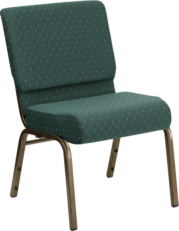 - This beautiful church chair will keep your guests comfortable whether you're hosting an all-day seminar, serving a 10 course meal or delivering your most inspirational sermon. This chair offers an advantage over pew seating with the flexibility of creating different seating configurations.The chair's cushioned back and 4 inch thick seat are generously padded with CA117 fire retardant foam and covered in durable fabric upholstery. The spacious, 21 inch wide seat has a waterfall edge that reduces pressure on your attendees' legs. A convenient book pouch on the back of the chair keeps seminar materials, bibles or hymn books readily available. Built-in ganging brackets connect your chairs and maintain nice, straight rows. Its sturdy 16 gauge steel, gold vein frame, with gracefully angled legs, has been tested to hold up to 800 pounds and plastic rocker glides protect your floor by sliding smoothly when you need to move the chair.The Hercules Church Chair is an excellent option for hotel lobbies, banquet halls, conference facilities and worship centers.