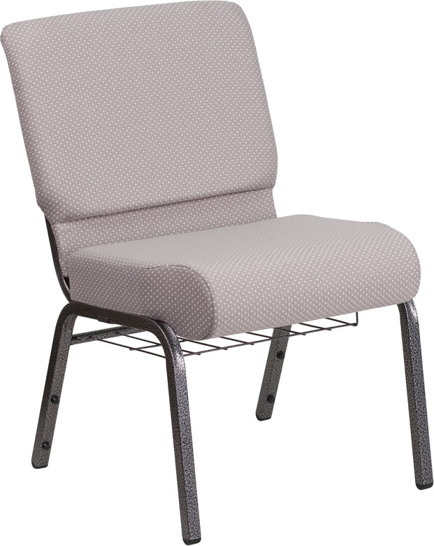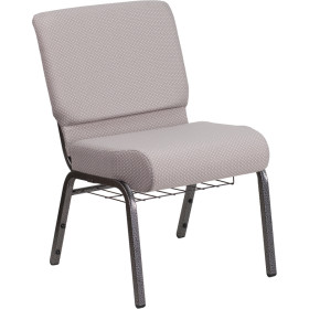 - This beautiful church chair will keep your guests comfortable whether you're hosting an all-day seminar, serving a 10 course meal or delivering your most inspirational sermon. This chair offers an advantage over pew seating with the flexibility of creating different seating configurations.The chair's cushioned back and 4 inch thick seat are generously padded with CA117 fire retardant foam and covered in durable fabric upholstery. The spacious, 21 inch wide seat has a waterfall edge that reduces pressure on your attendees' legs. A convenient book pouch on the back of the chair keeps seminar materials, bibles or hymn books readily available and a book rack under the seat gives everyone a place to store their personal belongings. Built-in ganging brackets connect your chairs and maintain nice, straight rows. Its sturdy 16 gauge steel, silver vein frame, with gracefully angled legs, has been tested to hold up to 800 pounds and plastic rocker glides protect your floor by sliding smoothly when you need to move the chair.The Hercules Church Chair is an excellent option for hotel lobbies, banquet halls, conference facilities and worship centers.