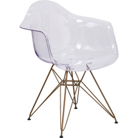 - Add charm and presence with this aesthetically pleasing chair. The gentle curves provide style and comfort. The transparency of the chair allows it to take up less space visually as with a solid chair. The versatility of this chair will have you in the office negotiating deals to in the home enjoying time with family. No matter the use, this chair is well suited to provide a complementary presence.