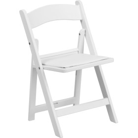 - The Kids Resin Folding Chair is a delightful option to make kids feel like VIPs at your special events. These mini versions will fit right in with the classic adult-sized chairs. A frame made from ultra-strong resin makes them very lightweight, but extremely strong. In fact, they can hold up to 264 pounds. The smooth frame is double braced for added stability and the front brace can be used as a footrest. The color of the frame is the same all the way through, so you don't have to worry about nicks and scratches. No re-painting or staining is ever needed; your chairs will look great for years to come. This adorable little chair comes with a detachable, washable, waterproof seat cushion filled with fire retardant foam. The easy to clean, durable design of these chairs makes them the ideal choice for indoor and outdoor use. The chairs are portable and fold compactly to transport and store.Designed for residential and commercial use, these kid-friendly folding chairs will make it an event to remember, whether it's a recital in the backyard, a formal banquet or a special wedding.