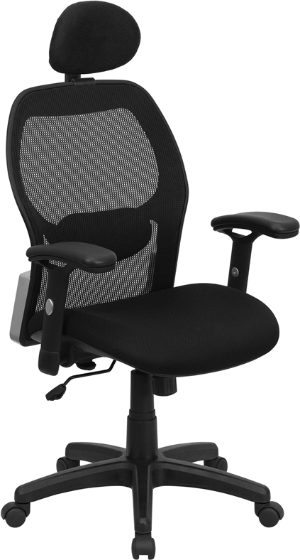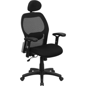 - Mesh office chairs can keep you more productive throughout your work day with its comfort and ventilated design. The breathable mesh material allows air to circulate to keep you cool while sitting. Finding a comfortable chair is essential when sitting for long periods at a time. The high back design relieves tension in the lower back, preventing long term strain. The included headrest will take the pressure off of your neck while leaning back. The waterfall front seat edge removes pressure from the lower legs and improves circulation. Chair easily swivels 360 degrees to get the maximum use of your workspace without strain. The pneumatic adjustment lever will allow you to easily adjust the seat to your desired height. The adjustable armrests take the pressure off the shoulders and the neck, which minimizes the risk of pain. This comfortably designed computer chair will make a great option for your home or office space.