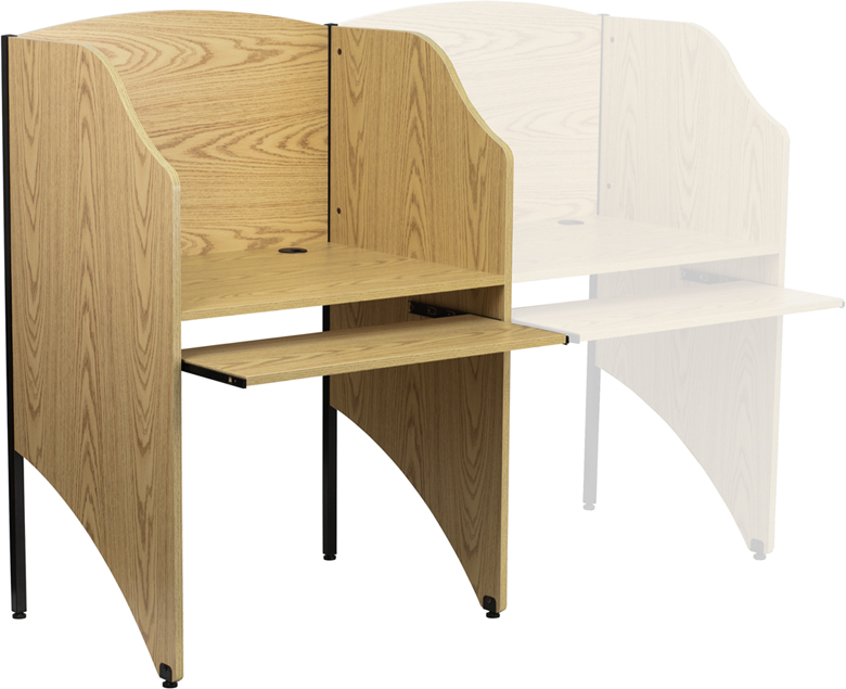 - The study carrel by Flash Furniture can be used in a multitude of environments for students and adults to relax and enjoy the solitude for studying and reading. This floor carrel features a large work surface to accommodate a computer monitor or laptop with room for books and paperwork and the leveling glides ensure a stable work surface. You can also create a row of study carrels by purchasing add-ons to have a computer lab or to create an atmosphere for users to have their own personal space for privacy. The possibilities are endless with creating your custom space and at an affordable price.