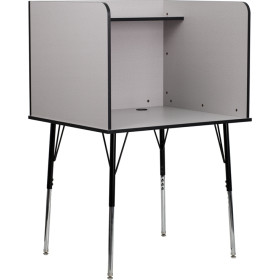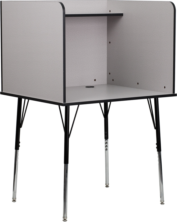 - This adjustable study carrel by Flash Furniture can be used in a variety of environments for both students and adults. The solitude of a study carrel makes this the perfect option for libraries, computer labs, training labs or any other environment where individual concentration is required. This floor carrel features a large work surface to accommodate a computer monitor or laptop with room for books and paperwork and extra items can be placed on the top shelf. The adjustable legs make this ideal for all grade levels to adjust from elementary to high school sized children.