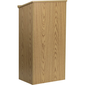 - This Stand-Up Lectern will keep you well organized for presentations and public speaking engagements. This lectern is an ideal choice for conference rooms, meeting halls, congregations and classrooms. This podium features a slanted top that will prevent papers and books from sliding. The pencil groove will keep writing utensils at hand. The adjustable shelf will allow you store AV equipment and other presentation items.