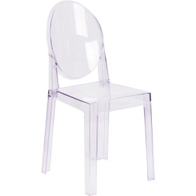 The transparent ghost chair brings modern design, elegance and function to your home, restaurant and special events.This modern chair with its Louis XVI styling and near invisibility highlights your artwork and other furniture, lightens a crowded space and can make a small room appear larger. A contoured seat makes this chair comfortable and its polycarbonate molded structure makes it shock, scratch and water resistant. Protective floor glides protect your floor by sliding smoothly when you need to move these beautiful chairs.Designed for indoor-outdoor and commercial use, the understated ghost chair is a classic accent chair that highlights almost any decor without blocking the view.