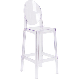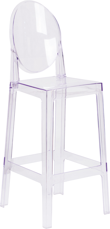 - The transparent barstool brings modern design, elegance and function to your home, restaurant and special events.This modern stool with its near invisibility highlights your artwork and other furniture, lightens a crowded space and can make a small room appear larger. The contoured, polycarbonate molded seat provides comfort. Protective floor glides protect your floor by sliding smoothly when you need to move these beautiful chairs.This beautiful chair will become your premier choice for both indoor and outdoor events. Coordinate your ghost chairs with ghost barstools for an elegant and diverse appeal.