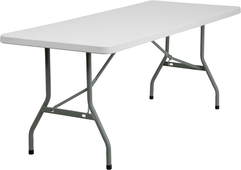 - This rectangular folding table is 6 feet long and is beneficial in a multitude of settings that include banquet halls, conference centers, cafeterias, schools and in the home. The table can be used as a temporary seating solution or be setup for everyday use. The durable blow molded top is low maintenance and cleans easily. The table legs fold under the table to make storage more convenient and for better portability. This table is commercial grade to withstand everyday use in the hospitality industry.