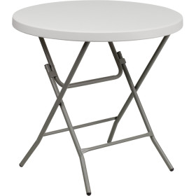 This petite sized folding table can be used in banquet halls, cafeterias, or in the home. This table is a great solution for temporary setups for displaying food or other small items. The durable blow molded top is low maintenance and cleans easily. Easy to fold legs fold flat under table top to make storage more convenient and for better portability. This table is commercial grade to withstand everyday use in the hospitality industry.