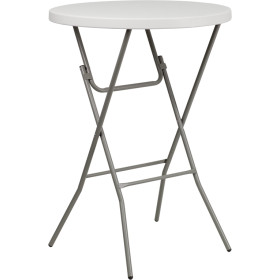 - This plastic folding table is a convenient option when you need to set up tables for special events, cook-outs on your patio at home or when you're serving snacks around the pool.The thick, granite white tabletop is 1.75" thick, and will seat up to 3 adults. It's waterproof, impact and stain resistant and has a 165 pound static load capacity. It features powder coated cross legs and Floor caps to protect your floor by sliding smoothly when you need to move it. The durable, easy-to-clean table folds compactly to transport and store.Designed for both indoor and outdoor use, the bar height folding table is commercial rated for use in banquet halls, hotels and outdoor events and an excellent choice for your next home, school or business event.