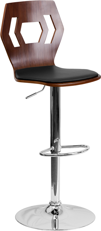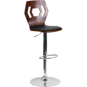 - Beautiful and elegant describe the bentwood style barstool that's accented with a hexagonal cutout for a contemporary flair. This stool is complemented with a comfortable vinyl padded seat and a height adjustable swivel seat that adjusts from counter to bar height with the handle located below the seat. The base and footrest have a chrome finish to complement the chair's modern design. To help protect your floors, the base features an embedded plastic ring.