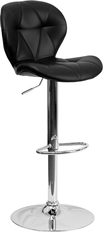 - With its tufted detailing, this adjustable height barstool will make a lovely contemporary accent to your kitchen, dining, or bar area. The height adjustable swivel seat adjusts from counter to bar height with the handle located below the seat. The base and footrest have a chrome finish to complement the chair's modern design. To help protect your floors, the base features an embedded plastic ring.