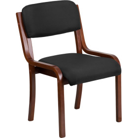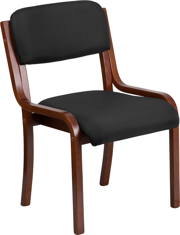 - The attractive Wood Side Chair will complement your reception and office seating needs. This chair features durable fabric upholstery, an open back and plastic floor glides to prevent your floors from being scratched. The rich walnut frame finish adds a nice color contrast that will not go unnoticed.