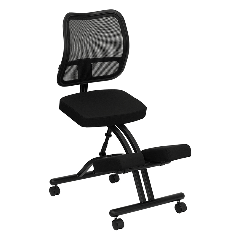 • This ergonomic chair resembles the look of a conventional task chair, but with the inclusion of kneeling pads. You'll be able to regain your body's natural posture with this ergonomic kneeling chair with included back. Kneeling chairs sit you in a position to allow your diaphragm to move efficiently and promote better breathing and blood circulation. The frame is height adjustable to get into your preferred seat height. Use as your permanent office chair or in conjunction with a conventional task or executive office chair.