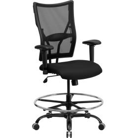 - Big & Tall office chairs are designed to accommodate larger and taller body types. This chair has been tested to hold a capacity of up to 400 lbs., offering a broader seat and back width. The high back extends to the upper back for greater lumbar support. This draft chair is essential for any profession where work surfaces are above standard height, such as lab technicians, architects, graphic artists, or any other creative assignment. They can also make a great chair for any job requiring employees to be at eye contact level with customers, such as receptionists or cashiers. The waterfall front seat edge removes pressure from the lower legs and improves circulation. Chair easily swivels 360 degrees to get the maximum use of your workspace without strain. A synchro tilt control allows the chair's back and seat to recline at different rates, increasing the angle between your torso and thighs. The pneumatic adjustment lever will allow you to easily adjust the seat to your desired height. The chrome foot ring can also be adjusted to your height preference. The adjustable armrests take the pressure off the shoulders and the neck, which minimizes the risk of pain. The heavy duty steel base is constructed to withstand daily use.