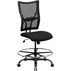 - Big & Tall office chairs are designed to accommodate larger and taller body types. This chair has been tested to hold a capacity of up to 400 lbs., offering a broader seat and back width. The high back extends to the upper back for greater lumbar support. This draft chair is essential for any profession where work surfaces are above standard height, such as lab technicians, architects, graphic artists, or any other creative assignment. They can also make a great chair for any job requiring employees to be at eye contact level with customers, such as receptionists or cashiers. The waterfall front seat edge removes pressure from the lower legs and improves circulation. Chair easily swivels 360 degrees to get the maximum use of your workspace without strain. A synchro tilt control allows the chair's back and seat to recline at different rates, increasing the angle between your torso and thighs. The pneumatic adjustment lever will allow you to easily adjust the seat to your desired height. The chrome foot ring can also be adjusted to your height preference. The heavy duty steel base is constructed to withstand daily use.