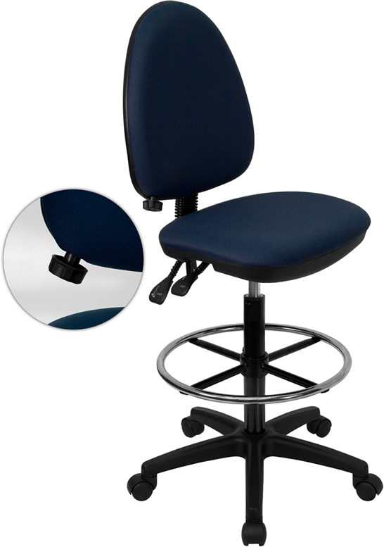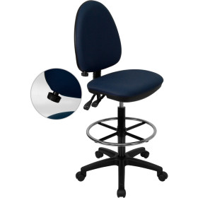 - Articulating the sophistication of European styling, along with the functionality of a multi-positional chair, this drafting chair is sure to please. Draft chairs are essential for any profession where work surfaces are above standard height, such as lab technicians, architects, graphic artists, or any other creative assignment. They can also make a great chair for any job requiring employees to be at eye contact level with customers, such as receptionists or cashiers. The locking back angle adjustment lever changes the angle of your torso to reduce disc pressure. The contoured seat dissipates pressure points for greater comfort. The waterfall front seat edge removes pressure from the lower legs and improves circulation. Chair easily swivels 360 degrees to get the maximum use of your workspace without strain. The pneumatic adjustment lever will allow you to easily adjust the seat to your desired height. The chrome foot ring can also be adjusted to your height preference. This versatile chair is sure to make an impact whether it is used in the home or work field.