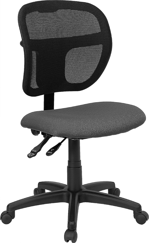 - Mesh office chairs can keep you more productive throughout your work day with its comfort and ventilated design. The breathable mesh material allows air to circulate to keep you cool while sitting. Finding a comfortable chair is essential when sitting for long periods at a time. The mid-back design offers support to the mid-to-upper back region. The contoured backrest provides firm back support allowing your back to rest comfortably. The locking back angle adjustment lever changes the angle of your torso to reduce disc pressure. The waterfall front seat edge removes pressure from the lower legs and improves circulation. Chair easily swivels 360 degrees to get the maximum use of your workspace without strain. The pneumatic adjustment lever will allow you to easily adjust the seat to your desired height. From behind the desk to the meeting room this chair can provide a seamless addition to your work space.