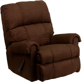 - This is an excellent Rocking Recliner that's made with your comfort in mind. It has been built to just the right dimensions for the average sized person, but it gives all the comfort you would expect from an over-stuffed recliner. Reclining furniture offers the best in relaxation for you to kick up your feet to watch TV, work on a laptop, or to just hang out with family and friends. With a quick pull on the lever you can situate yourself in a comfortable position. Use as a traditional recliner or a soothing rocker that can aide in sleeping and with nursing mothers. The Microfiber cover is very lush, comfortable, and easy to clean.