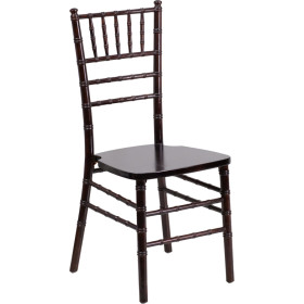 The Walnut Wood Chiavari Chair is ideal for weddings, banquets and special events from casual to the most elegant. Constructed of high quality hardwood with a gold finish, this chair is very lightweight, yet extremely strong and wobble-free. The frame has reinforced stress points that give it the capacity to hold up to 1100 pounds. Steel flat socket cap screws and nuts ensure durability and special 45° joints on the bottom of the front seat section increases the chair's stability. These beautiful chairs ship fully assembled, can be stacked 10 high for storage.With its durable, lightweight construction and elegant styling, this Chiavari chair will be the prime seating choice for all of your special events, whether indoors or outside.