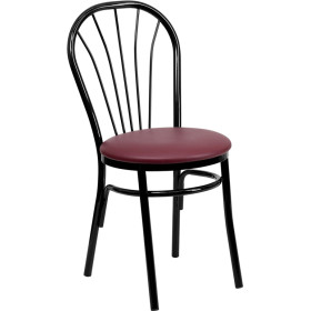 - This traditional Fan Back Chair is often used in the hospitality industry for its casual design. This chair would make a great option in restaurants, cafes, pool halls, lounges, bars and other high traffic establishments. This chair is easy to clean, which is an important aspect when it comes to a business. This chair was designed to withstand the daily rigors in the hospitality industry, but is also popular in the home as a dining chair. The thick, foam padded seat will keep users comfortable. The durable frame is stabilized with welded joint assembly. The floor glides help protect your floors and ensure smooth gliding. The simple and lightweight design of this chair will not disappoint, whether used for residential or commercial grade use.