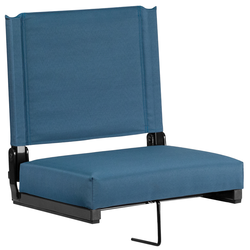 - Love your team but hate those bleachers? Ever feel like you're the one who got tackled when the game's over? Now there's a better way!Watch the game from the comfort of your Grandstand Comfort Seats by Flash Furniture. Compact and portable with a built in carrying handle and sturdy grip, this stadium seat is the lightest of its kind. Weighing in at a mere 7.6 pounds, this amazing seat can support up to 500 pounds without even breaking a sweat. With its padded back and 3 inch foam seat, you'll be so comfortable you won't want the game to end.Rubber strips on the bottom prevent the seat from sliding. A built-in bleacher hook provides added stability when sitting on wooden and metal bleachers and easily pivots out of the way to sit on the ground. Not just for game day, take your game day seat with you when you go camping, to the beach and outdoor concerts.