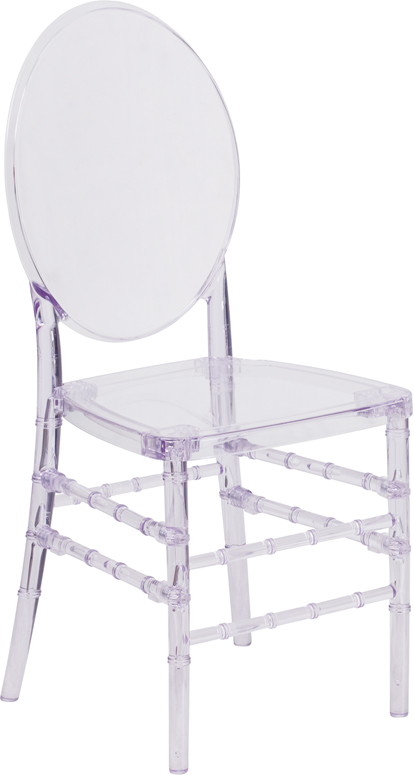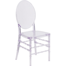 - The Elegance Crystal Ice Stacking Florence Chair is ideal for weddings, banquets and special events, whether indoors or outside. Constructed of ultra-strong polycarbonate, it is shock, scratch and water resistant, extremely strong and wobble free. It’s crystal clear all the way through, so you don't have to worry about cosmetic nicks ruining the appearance. This chair is UV treated to help prevent fading and discoloration. Your chairs will look great for years to come. These chairs ship fully assembled, and can be stacked 8 high for storage.With its durable, lightweight construction and classic styling, this beautiful chair will become the prime seating choice for all of your special events, from casual to elegant.