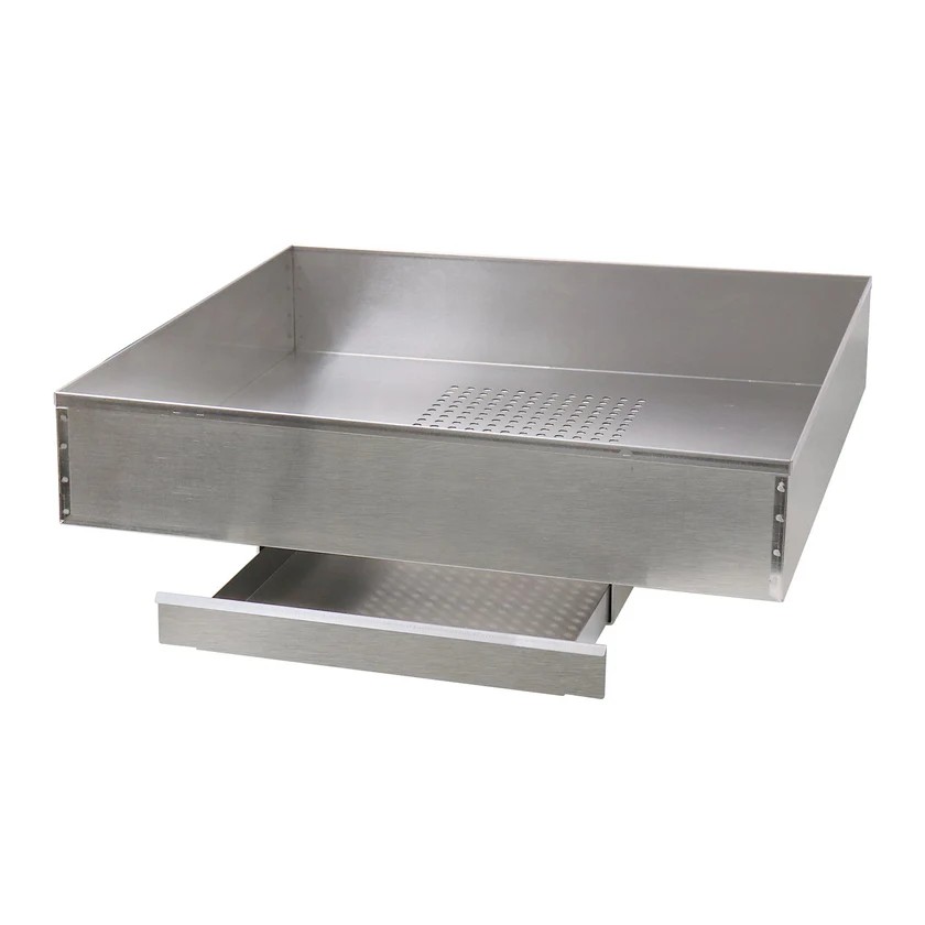 The Perforated Cooling Pan #2166P from Gold Medal is the perfect way to cool your corn. It is an anodized aluminum without a chute. (2.5 or 5 gal.) Includes Old Maid Pan - for countertop sifting of popped corn where space is limited. 3/8" diameter holes.