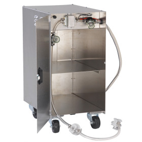 - Holds (2) 35 lb. bag-in-box oil units