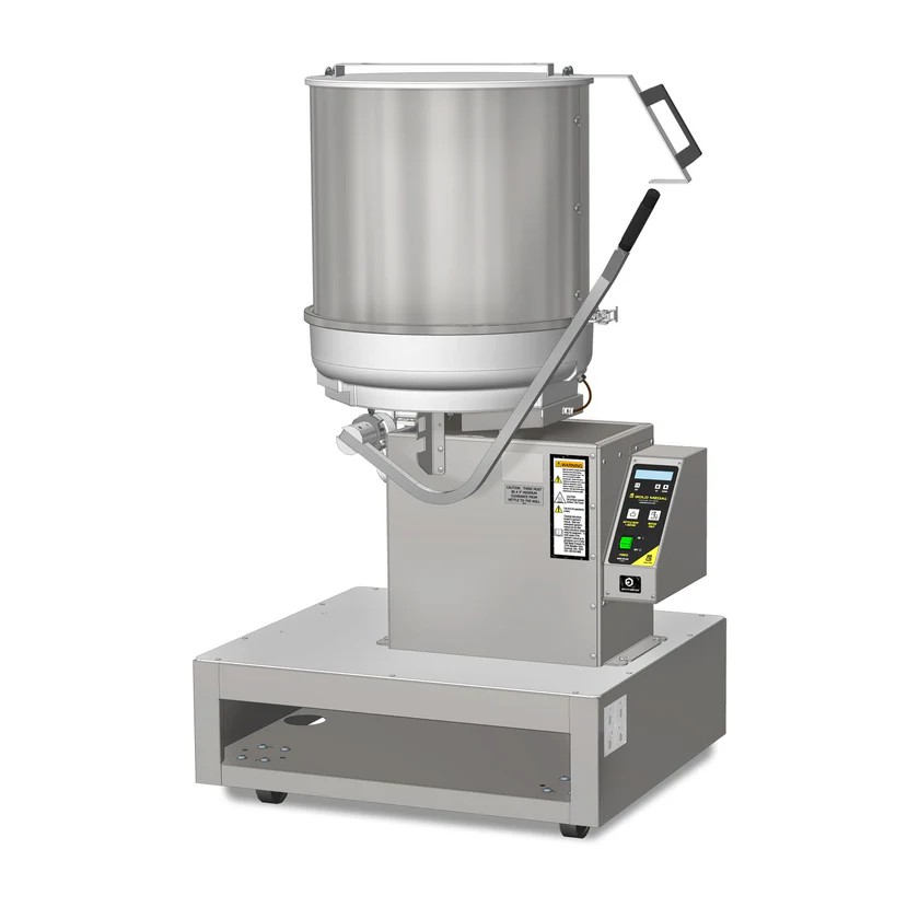 The 2436-001 short base with casters that is designed especially for Gold Medal Karmel Kool tables (2169-00-100) or any of the Gold Medal Mark 10 cooker mixers. The base is all stainless steel and the casters allow you to make your Karmel Kool table or Mark 10 cooker mixer into a mobile unit. This unit is proudly made in the USA. Shown with Mark 10 Cooker not included.
