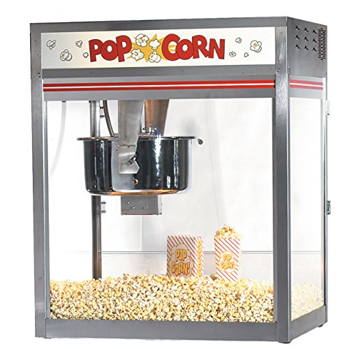The Discovery Popcorn Machine Popper features the Pop-O-Gold kettle in a Value Line cabinet. The all welded stainless steel upper cabinet provides strength on this popcorn machine. Comes already wired for an optional oil delivery system. This model is designed for the back counter with the lighted sign on the operators side. Also features E-Z Kleen kettle with twin arm suspension, all welded stainless steel upper cabinet, 3 stage exhaust filter system, removable glass, lighted sign and "Big Eye" Heat Control system which eliminates thermostat problems and provides the operator with both a visual light and a buzzer to alert you when it is time to dump the kettle.