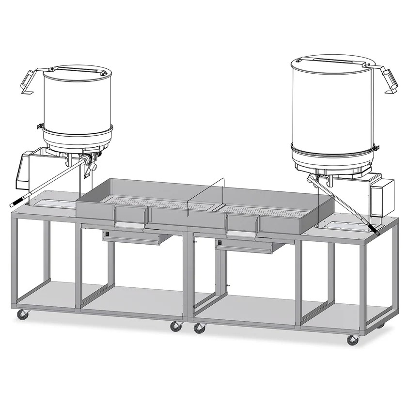 For a Powerhouse of Gourmet Popcorn Production for a powerhouse of gourmet popcorn production, the Twin Karmel Kool System delivers the best results for busy operators. This robust setup includes two tables and space for two cooker mixers (Mark 10 or 20, each sold separately), maximizing your popcorn production.